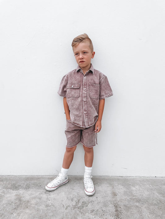 Shop ShirtLooking for a stylish and comfortable shirt for any occasion? Check out our acid washed brown button-up shirt! Made with super soft and comfortable material, this shirt also features invisible press buttons that make it easy for those little fingers. With its funky oversized fit and epic colour, it's no wonder it's a favourite. Upgrade your wardrobe with this must-have shirt today!